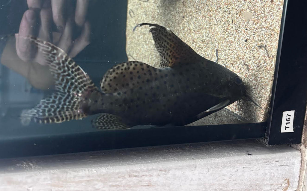 The Featherfin Synodontis (Synodontis eupterus) is a popular aquarium catfish known for its unique appearance and interesting behavior. This fish is named for its distinctive feather-like fins, which extend from its dorsal and anal fins. It has a sleek, elongated body that is predominantly brown with a lighter-colored belly and darker spots or stripes along its sides. Featherfin Synodontis is known to be hardy and easy to care for, making it a good option for beginner aquarists. They are generally peaceful and can be kept with other non-aggressive fish. However, it's important to provide hiding spots and caves for the Featherfin Synodontis to reduce stress.